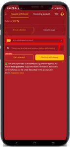 - Select the deposit and withdrawal method,